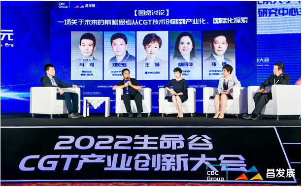 大会现场还安排了2场圆桌讨论,康桥资本董事总经理马可、北京大学干细胞研究中心主任邓宏魁,北京泽辉辰星生物科技有限公司总裁张愚,中因科技创始人杨丽萍、昌发展总经理王颖5位嘉宾就《从CGT技术创新到产业化国际化探索》这一议题展开讨论。5位嘉宾对CGT技术都充满了信心和期待,希望在五到十年后,现在不能被传统药物解决的疾病,在未来能够被细胞疗法所解决。