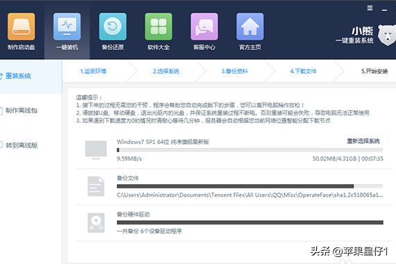 3、接着小熊一键重装会自动进行文件备份和系统下载,您只需慢慢等待即可。